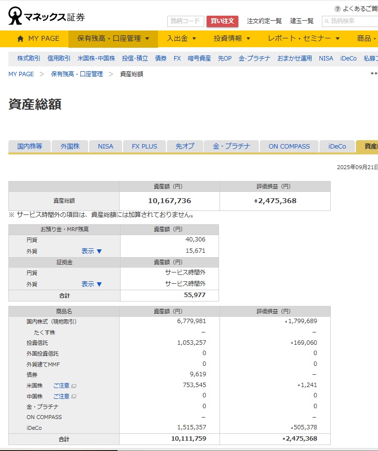 次の目標は証券会社の総資産ではなく、iDeCo抜きでの総資産額1500万円です